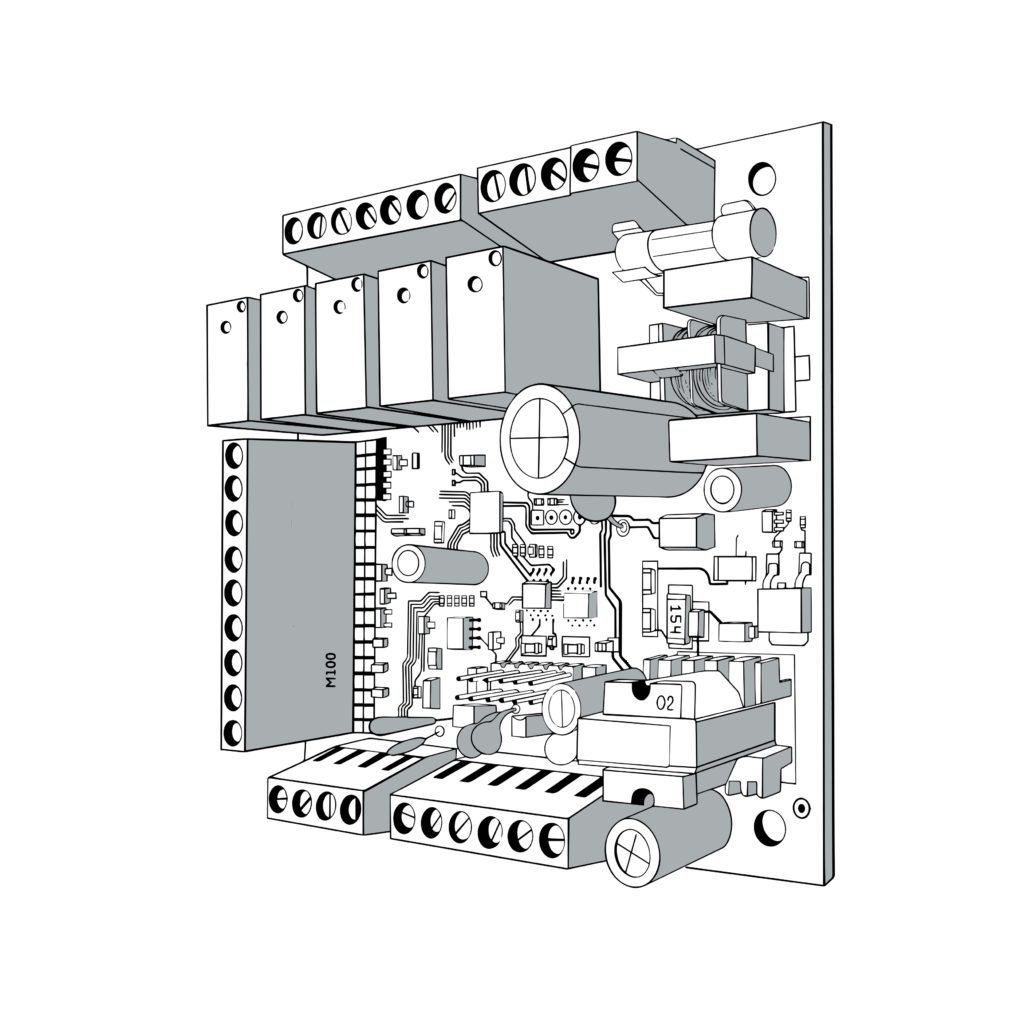 • несъемные клеммы, питание 220В (встроенный БП)